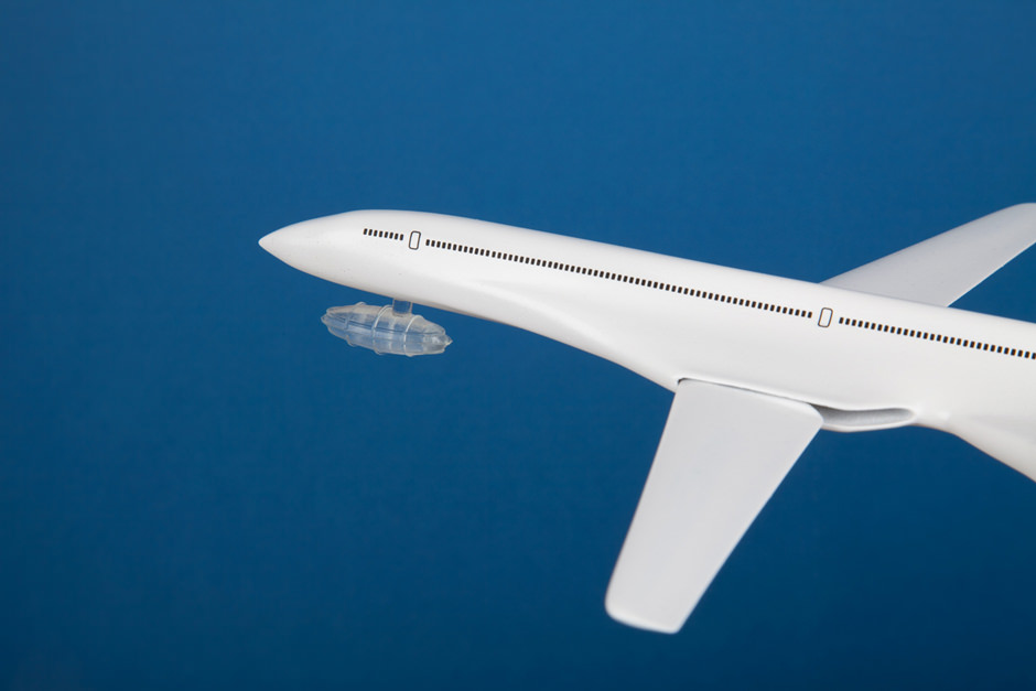 The front of the aircraft features a housing for an interchangeable triangular spike used to test how different shapes could create potentially optimized shock waves to use for propulsion. The aircraft’s interior space houses a cockpit for one pilot along with a state of the art sonic boom-powered engine.