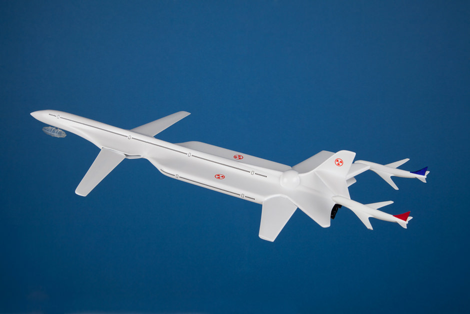 The aircraft is self-piloting to ensure safe operation and to eliminate pilot misuse or error during flight. It constantly circles the globe avoiding sovereign airspaces powered by its on-board nuclear power plant which provides virtually limitless amounts of power to keep it flying and those on board innovating.