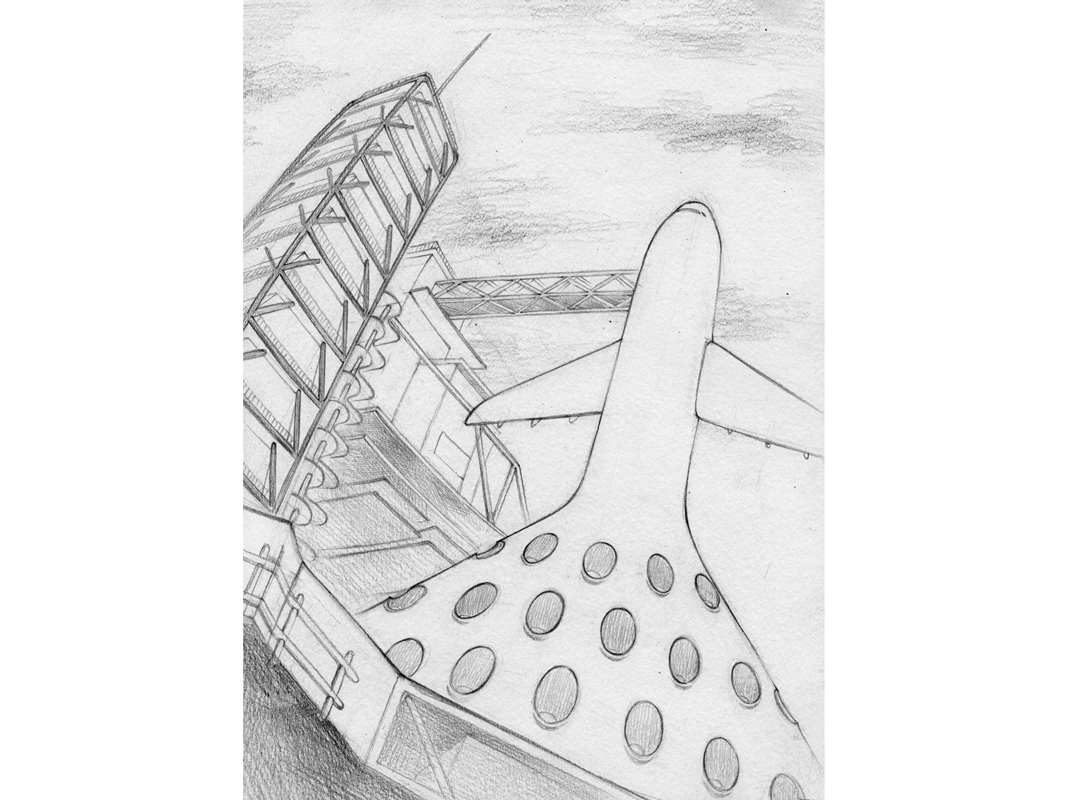 Air Laissez-faire is a self-piloting always airborne nuclear-powered free enterprise aircraft. It makes the furthering of innovation outside the jurisdiction of governance and sovereign airspace possible by enabling forward-thinking entrepreneurs and others with innovative ideas to pursue their visions without the hinderance caused by legislation, taxation and other external oversight. Air Laissez-faire is 158 meters long and provides workspace, accommodation, an air-based airport terminal, as well as other amenities such as an esplanade extending the length of the aircraft and a 360 degree glass enclosed multipurpose space hanging down from the aircraft’s nose.